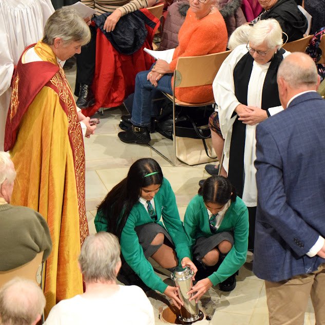 The theme of the service was one of celebration and joy, with thanksgiving for the past but eyes very much fixed on the future. One of the key moments of the service was the placing of a blessed time capsule by pupils of Charles Williams CinW Primary School into the centre of the church’s newly installed labyrinth.